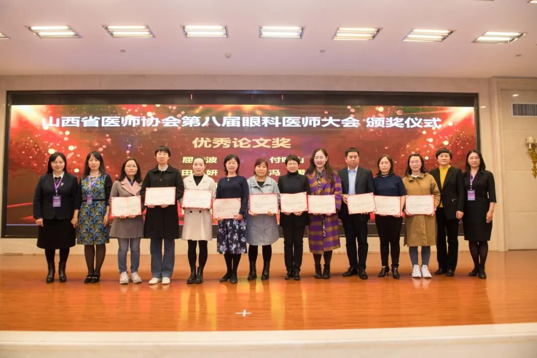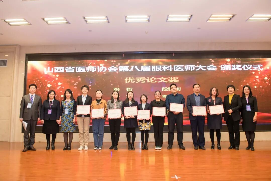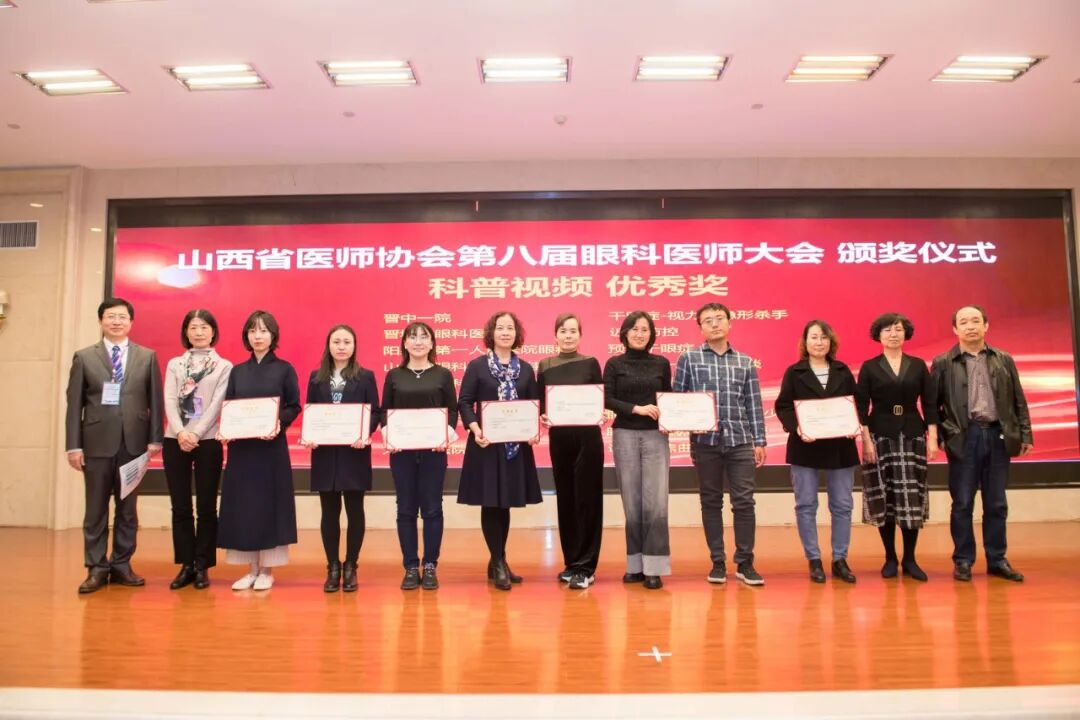 会议还对首届优秀眼科医师、优秀论文和优秀科普视频进行了表彰。我院袁志刚、石岩获得“山西省优秀眼科医师奖”,周国宏、张东昌、赵军梅、冯熠、郑东萍、史清霞、张哲、闫春芳获得“优秀论文奖”,我院青光眼科、眼底病科、原莉莉、韩媛媛、赵俊华获得“优秀科普视频奖”。