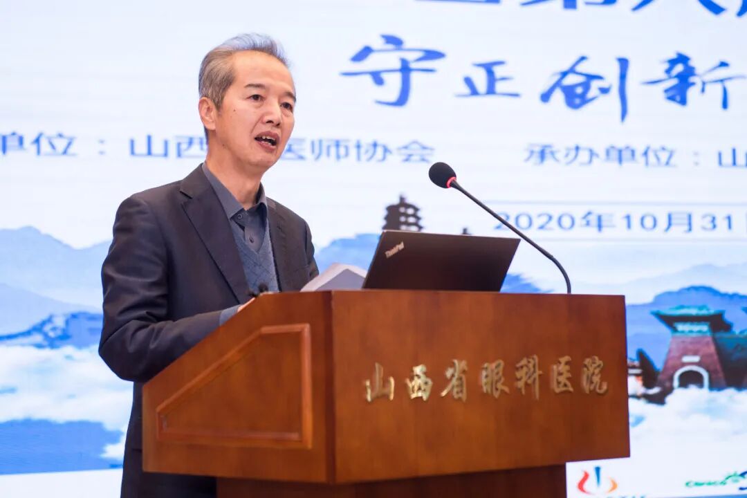 孙斌教授在开幕词中首先感谢省内外专家对医师协会眼科医师分会的鼎力支持,并表示本次大会坚持“服务、协调、自律、维权、监督、管理”的宗旨,聚焦眼科诊疗指南、操作规范、医学人工智能等前沿热点问题,来自全国的十余位顶尖眼科大咖为大会作了为广大眼科医务工作者带来多维、立体、全新的视角与理念。在突出专业学术研讨的同时,还设置了优秀科普作品大赛、优秀壁报评比、青年医师自由发言、山西省首届优秀眼科医师奖颁奖典礼等活动。内容丰富多彩、形式活泼多样。他希望全省眼科同仁携手促进眼科医疗事业的发展,为广大人民群众的眼健康保驾护航。